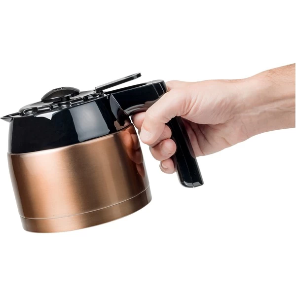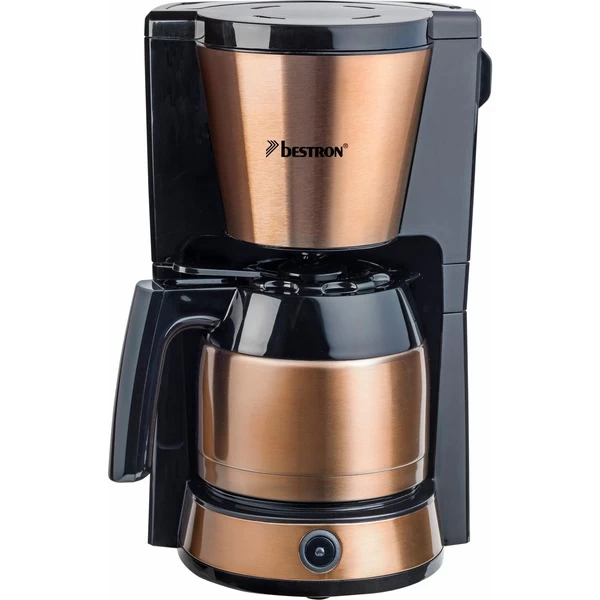 Die Bestron ACM1000CO ist eine klassische Filterkaffeemaschine mit doppelwandiger Thermokanne im stilvollen Kupfer-Design. Die Thermokanne fasst bis zu 8 Tassen Kaffee. Der entnehmbare Filterhalter mit mitgeliefertem Permanentfilter kann bei Bedarf auch mit Papierfiltern genutzt werden. Zu den weiteren praktischen Features gehören der Tropfverschluss, der Überhitzungsschutz und die Wasserstandsanzeige mit Tassenskala. Und dank integrierter Abschaltautomatik schaltet sich die Bestron ACM1000CO für mehr Sicherheit und einen geringeren Energieverbrauch von selbst ab.Art.-Nr.: 1697342