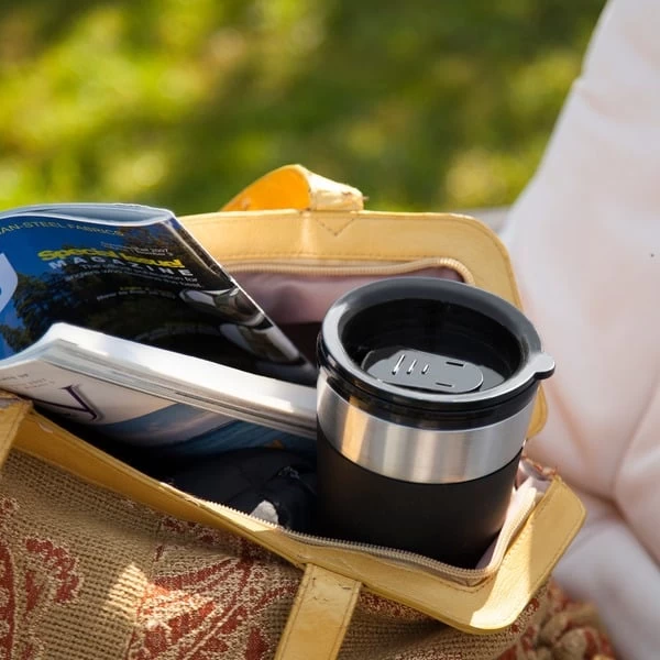 | Weitere Informationen | Kompakte und praktische Kaffeemaschine mit verschließbarem Edelstahl-Thermobecher für unterwegs, auch geeignet für Camping | ||