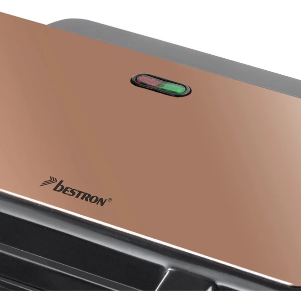 Der Sandwichmaker ASM90XLCO aus der Copper Collection in stilvollen Kupfer-Design macht das Zubereiten von leckeren Sandwiches zum Kinderspiel. Mit einer Leistung von 900 Watt und automatischer Temperaturregelung lassen sich einfach 4 dreieckige Sandwiches zubereiten. Die Bereitschaftsanzeige signalisiert das Erreichen der passenden Backtemperatur. Für einen sicheren Gebrauch sorgen das wärmeisolierende Gehäuse mit großem wärmeisoliertem Griff mit Verriegelungsclip und die Antirutschfüße. Die antihaftbeschichteten Sandwichplatten erleichtern die Reinigung. Der ASM90XLCO kann platzsparend senkrecht aufbewahrt werden.