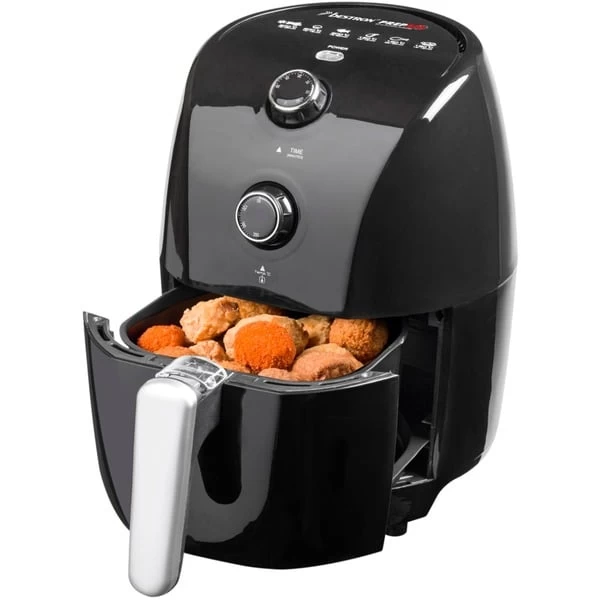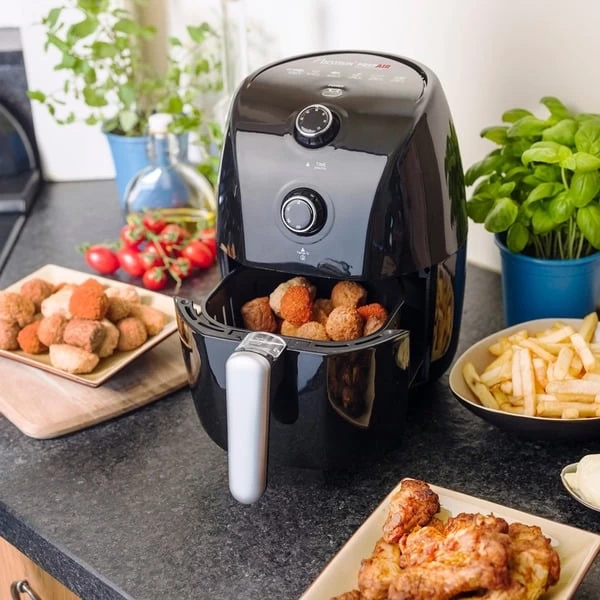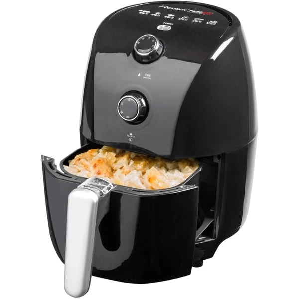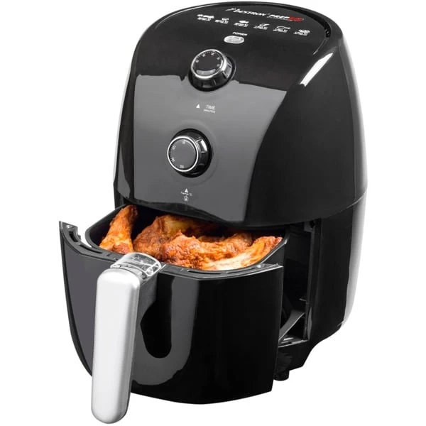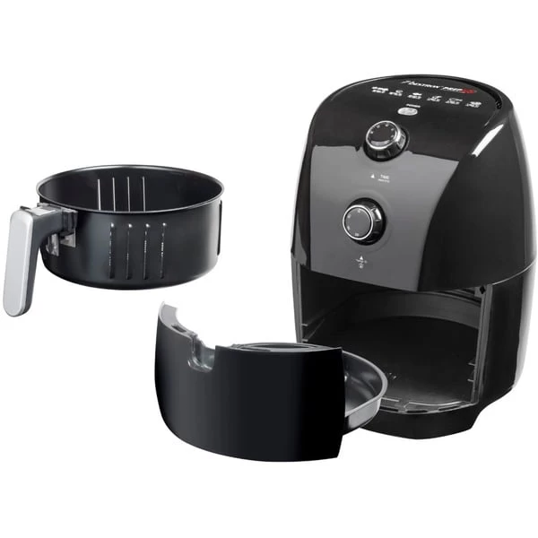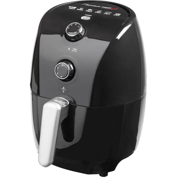 Mit der PrepAir Heißluftfritteuse AAF300 von Bestron kann man gesünder und sicherer Frittieren, Backen, Braten und Grillen, ohne Öl und ohne Fett. Durch die große Kapazität von ca. 1,5 Litern können zwei Portionen Pommes Frites oder Snacks gleichzeitig zubereitet werden. Die PrepAir eignet sich nicht nur für Pommes Frites und Snacks sowie Kartoffelprodukte sondern auch Fleisch, Fisch, Gemüse, Brot usw. Die einzigartige PrepAir-Technologie sorgt für gleichmäßiges Garen durch die schnelle Zirkulation der Luft. Die Bedienung ist intuitiv und komfortabel, man stellt einfach Temperatur und Zeit ein und es kann losgehen! Bis 200°C kann die Temperatur stufenlos eingestellt werden. Nach Ablauf des 30-Minuten-Timer ertönt ein Signal und das Gerät schaltet sich automatisch ab. Diese Art der Speisezubereitung ist nicht nur fettarm sondern es entstehen keine unangenehmen Gerüche. Die PrepAir AAF300 lässt sich nach dem Gebrauch sehr einfach reinigen, da Tablett und Frittierkorb antihaftbeschichtet und spülmaschinenfest sind. Für Sicherheit sorgen die Kontrollleuchten, der Überhitzungsschutz und die rutschfesten Füße. Art.-Nr.: 1494091