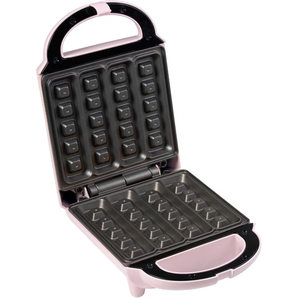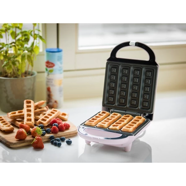 Mit dem Waffelstick-Maker ASW400 von Bestron lassen sich vier herrliche Waffelsticks zaubern. Dank der 460 Watt und der „gebrauchsfertig“ Kontrollleuchte sind die Waffelsticks im Handumdrehen fertig. Das Gehäuse in zartem Rosa und die Griffe sind hoch hitzebeständig und für noch mehr Sicherheit sorgen die Antirutschfüße sowie der Überhitzungsschutz. Die Reinigung ist dank der der hochwertigen Antihaft-Backplatten ein Kinderspiel.Art.-Nr.: 1697682