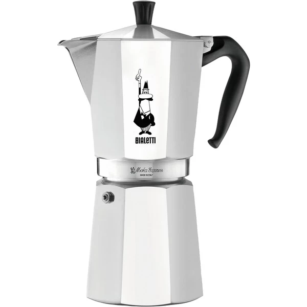 Mit der Moka Express von Bialetti gelingt die Zubereitung eines traditionellen italienischen Espresso oder Mokka innerhalb von Minuten. Diese Variante der Moka Express kocht bis zu 18 Tassen in einem Durchgang. Die Moka Express ist aus einer Aluminiumlegierung hergestellt, die sowohl auf Gasherd als auch auf Herdplatte verwendet werden kann. Der Kessel verfügt über Bialettis markante, achtseitige Form, die eine perfekte Wärmeverteilung ermöglicht, um das Aroma des Kaffees zu verstärken.Art.-Nr.: 1751646