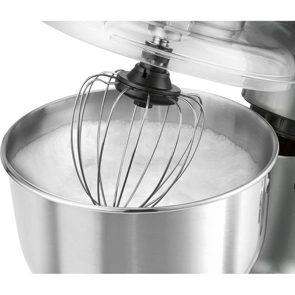 Die Bomann KM 1395 CB ist eine leistungsstarke Küchenmaschine mit 1.200 Watt. Die Rührschüssel ist aus Edelstahl und fasst 6,2 Liter für 3 bis 3,5 kg Teig. Mit 11 Geschwindigkeitsstufen, Pulsfunktion und Softanlauf eignetet sich die KM 1395 CB für das gleichmäßige verrühren von größeren Mengen Teig, schwere Teige, lockeren Biskuit und luftigen Eischnee. Dank des Spritzschutz-Deckels mit Einfüllöffnung bleibt die Arbeitsfläche während dem Betrieb sauber. Mit dabei sind ein 1,5 Liter Fassender Mixbehälter aus Glas und ein Fleischwolf mit 3 Edelstahl-Lochscheiben und Pastafunktion (Spaghetti, Makkaroni, Tagliatelle). Art.-Nr.: 1461048