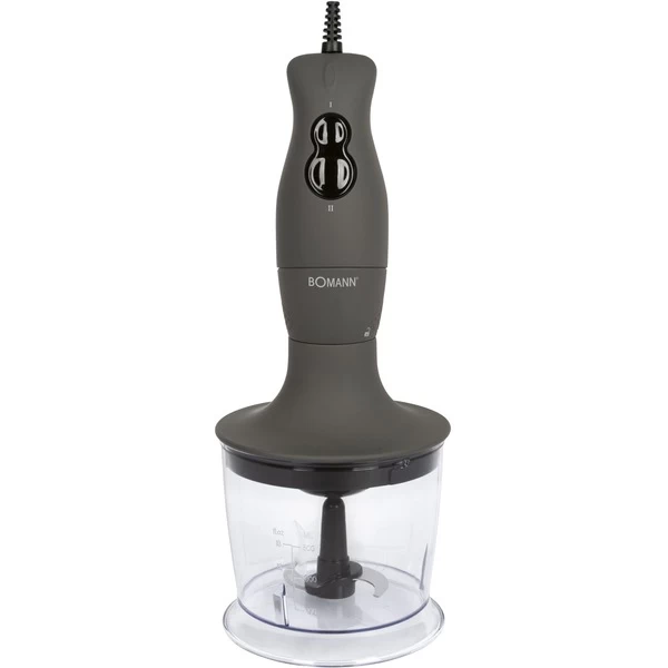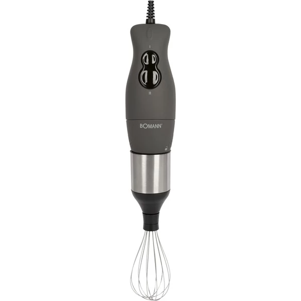Mit dem Stabmixer-Set SMS 6055 CB von Bomann erhält man 3 Geräte in einem: Einen Stabmixer, einen Multizerkleinerer und einen elektrischen Schneebesen. So bietet das Set vielfältige Möglichkeiten in der Zubereitung. Der laufruhige DC-Motor mit 400 Watt kann in 2 Stufen geregelt werden. Dank des ergonomisch geformten Griffs mit Soft Touch Gehäuse lässt sich mit dem SMS 6055 CB komfortabel arbeiten. Nach Gebrauch finden Schneebesen und Stabmixer in der passenden Halterung am Gerät Platz. So lässt sich das SMS 6055 CB Stabmixer-Set einfach und platzsparend verstauen.