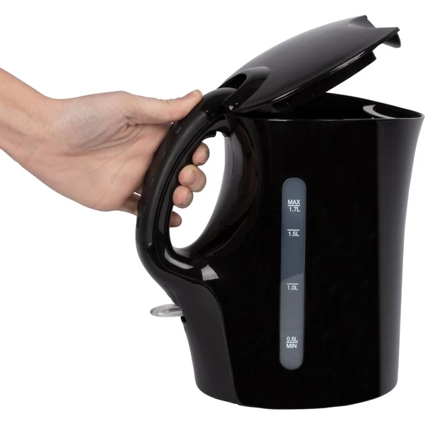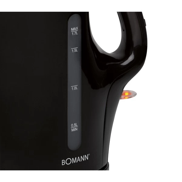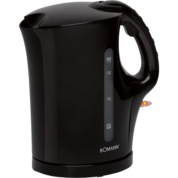 Der Bomann WK 5011 CB Wasserkocher fasst bis zu 1,7 Liter Wasser und kann mühelos mit einer Hand bedient werden. Der Klappdeckel öffnet sich per Knopfdruck und ist so gegen ein versehentliches Öffnen gesichert. Der WK 5011 CB wird kabellos über die Basisstation, die eine praktische Kabelaufwicklung beinhaltet, aufgeheizt und besitzt zwei außenstehende Wasserstandsanzeigen. Für einen besseren Halt ist der Griff des WK 5011 CB gummiert und kann manuell oder automatisch abgeschaltet werden.Art.-Nr.: 1655153
