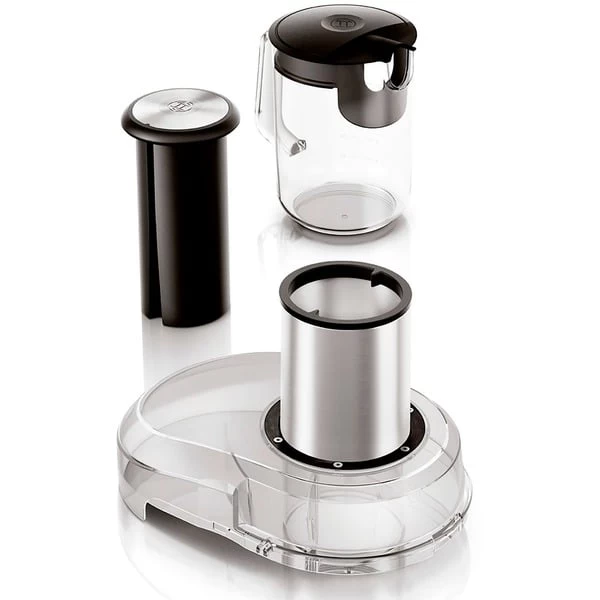 | Material | Gehäuse aus Aluminium Druckguß, Saftauslauf und Sieb aus Edelstahl, Keramikmesser, BPA-freier Kunststoff | ||