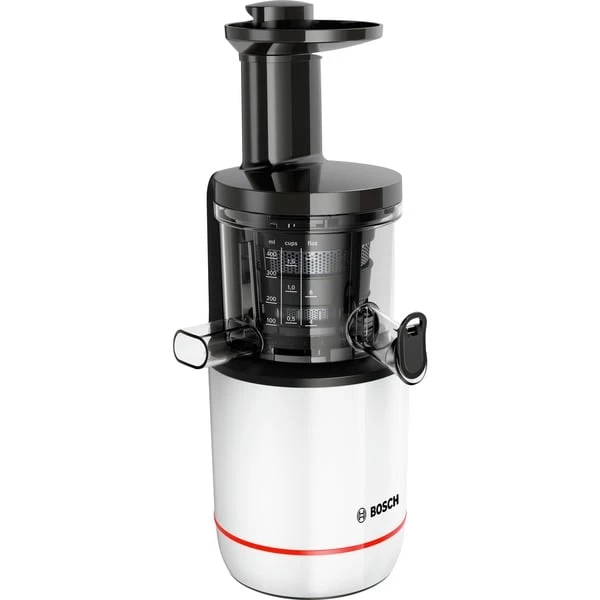 Der Slow Juicer VitaExtract MESM500W von Bosch überzeugt durch sein schlankes Design und durch seine langsame Extration. Durch die Gentle Squeezing Technology wird ein besseres Ergebnis erzielt, da die Zutaten ihren gesunden Inhaltsstoffe, dank der niedrigen Drehzahl, behalten. Die Tritan-Schraube mit hervorragendem Widerstand zerdrückt Nüsse, zähe oder gefrorene Früchte und Gemüse. Zwei Filter mit verschiedenen Lochgrößen ermöglichen die Zubereitung von gesunden Säften und Smoothies. Die Umkehrlauf-Funktion dient dazu festsitzende Lebensmittel durch kurzzeitiges Rückwärtslaufen der Schnecke wieder zu lösen. Das Gerät reinigt sich praktisch selbst – einfach Wasser rein und anschalten, dazu sind alle abnehmbaren Teile spülmaschinenggeignet.Art.-Nr.: 1617144