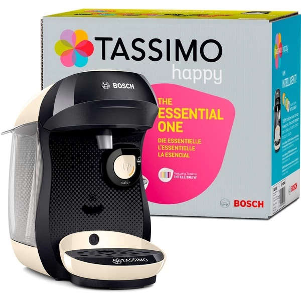 Das kompakte Bosch Multigetränkesystem Tassimo Happy TAS1007 besticht durch seine bunte Farbgebung. Über die vollautomatische Ein-Knopf-Bedienung lässt sich die Tassimo Happy einfach bedienen und das intuitive LED-Bedienfeld informiert über den jeweiligen Gerätezustand und zeigt an, wenn das Nachfüllen von Wasser, das Wechseln des Filters oder Entkalken notwendig ist. Mit der patentierten INTELLIBREW-Technologie – einer intelligenten Getränkeerkennung per Barcode – wird jedes Getränk mit der richtigen Wassermenge, Temperatur und Brühzeit perfekt zubereitet. Dank des Heizsystems ist die Tassimo Happy direkt nach Einschalten der Maschine einsatzbereit und durch die komfortable Selbstabschaltung nach jedem Brühvorgang sowie dem echten Ein-/Ausschalter hat sie zudem einen geringen Energieverbrauch.Art.-Nr.: 1497611