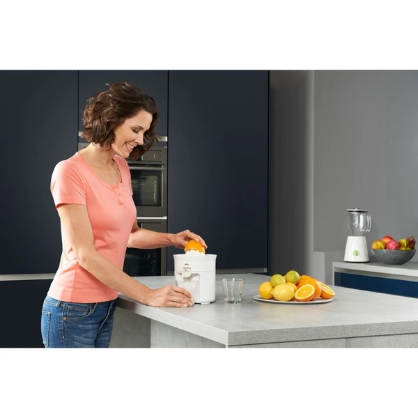 Einfach, leicht und besonders praktisch: Die Braun CJ 3050 Zitrusspresse eignet sich nicht nur zum Pressen von Zitronen, sondern auch für Orangen, Limetten oder ähnlichen Früchten und ist damit vielseitig einsetzbar. Der 60 W starke Motor sorgt für schnelle und saubere Ergebnisse, bleibt dabei aber angenehm leise. Ein Anti-Tropf-System vermeidet das Austropfen des Saftes, damit alles ordentlich bleibt. Zur einfachen Reinigung kann man die CJ 3050 auseinander nehmen und in der Spülmaschine reinigen. Die Bedienung der CJ 3050 ist dabei denkbar einfach: Zum Starten muss man die Frucht lediglich nach unten drücken, dabei hält man den Vorgang auf indem man den Druck verringert.Art.-Nr.: 1493212