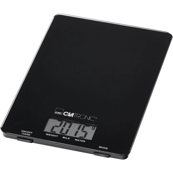 Die extra flache digitale Küchenwaage KW 3626 von Clatronic ist batteriebetrieben und mit einer hochwertigem Glas ausgestattet. Die LCD-Display ist gut lesbar und verfügt über eine Batteriewechselanzeige. Diese Küchenwaage zeigt das Gewicht von 1 g bis zu ihrer maximalen Tragkraft von 5 kg an, ist umschaltbar von g, lb-oz, ml, fl-oz und verfügt auch über eine praktische Tara/ Zuwiegefunktion sowie über eine Abschaltautomatik.Art.-Nr.: 1654978