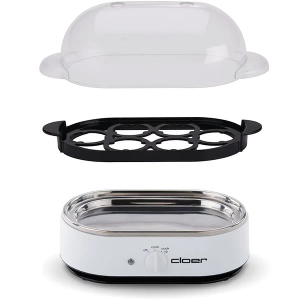 | Funktionen | Herausnehmbarer Eierträger, Akustische Fertigmeldung, Kontrollleuchte, Ein-/Ausschalter | ||