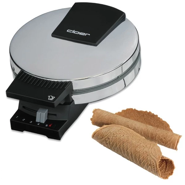 Mit dem Hörnchenautomat Cloer 285 lassen sich hauchdünne, knusprige Waffelhörnchen herstellen, um leckeres Eis wie in der Eisdiele zu genießen. Der Bräunungsgrad kann mit einem Schieberegler an der Gerätevorderseite stufenlos eingestellt werden und eine optische und akustische Fertigmeldung gibt Auskunft darüber, ob die Waffeln fertig gebacken sind. Ein fettarmes Backen ermöglicht die Antihaftbeschichtung der 15 cm großen Backfläche. Ein innenliegendes Scharnier und die Fettauffangrille vereinfachen die Reinigung des Gerätes. Der Hörnchenautomat 285 lässt sich dank Kabelaufwicklung mit Steckerdepot und durch Hinstellen auf die Griffe platzsparend verstauen.Art.-Nr.: 1127797