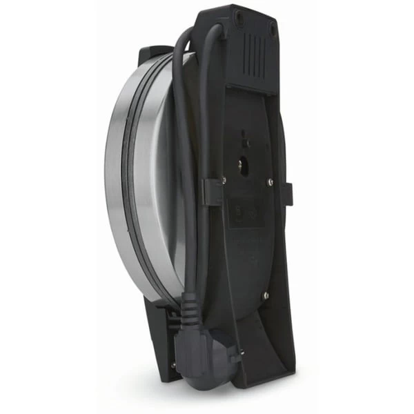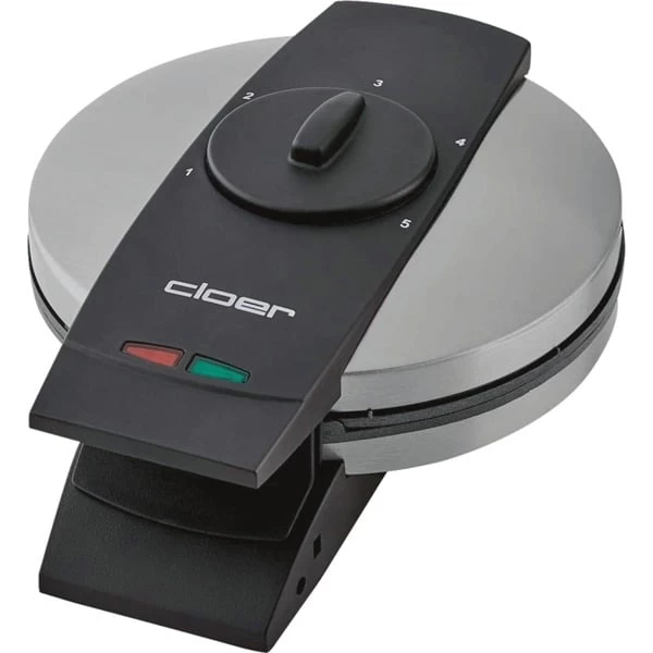 Der Waffelautomat Cloer 1639SR im eleganten Edelstahlgehäuse backt herzhafte und leckere Waffeln. Der Bräunungsgrad kann mit einem Drehregler an der Geräteoberseite stufenlos eingestellt werden und eine Kontrollleuchte gibt Auskunft darüber, ob die Waffeln fertig gebacken sind. Backzeit beträgt abhängig vom Teig ca.1,5 bis 3 Minuten. Die Antihaftbeschichtung der 15,5cm großen Backfläche ermöglicht fettarmes Backen, und durch die Zwei-Komponenten-Beschichtung ist sie besonders zuckerresistent. Ein innenliegendes Scharnier und die Teigauffangrille vereinfachen die Reinigung des Gerätes.Art.-Nr.: 1755088