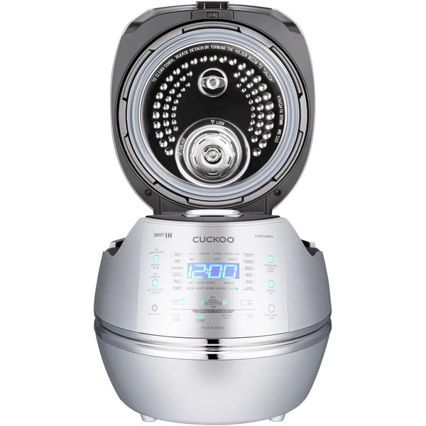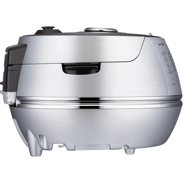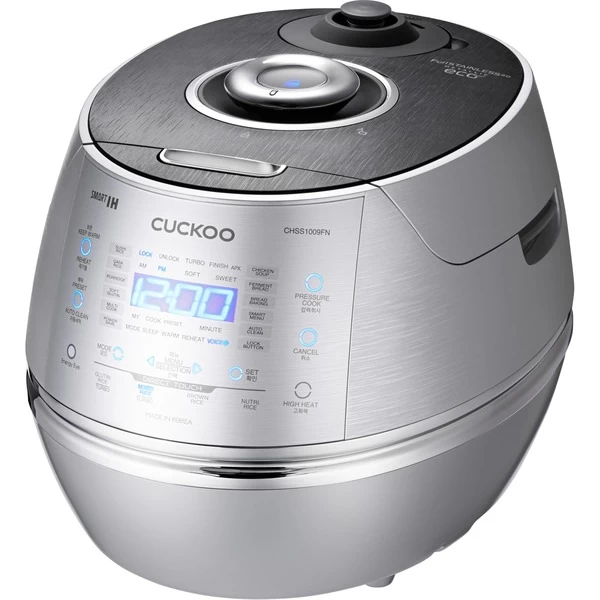 Der CRP-CHSS1009FN Dampfdruck Reiskocher von Cuckoo überzeugt mit seinen unzähligen Funktionen und Einstellungen. Er bietet eine Vielzahl von Möglichkeiten für das absolut perfekte Kochresultat. Die doppelte Dichtungsbeschichtung aus Gummi versiegelt den Topf komplett und verhindert das ungewollte Entweichen des Dampfes, was auch dem Geschmack sehr zuträglich ist. Der abnehmbare Hygienedeckel aus Edelstahl ist spülmaschinenfest und daher sehr einfach zu reinigen. Die Cuckoo Induktionserhitzung erzeugt eine gleichmäßige Temperatur von allen Seiten. Das Dampfkochen erhält nicht nur die Nährstoffe und den Geschmack des Essens, sondern verkürzt auch die Kochzeit immens. Mit dem CRP-CHSS1009FN lassen sich auch die Vorteile von braunem, gekeimtem Reis (Gaba Reis) mit nur einem Knopfdruck genießen. Dank der intelligenten DSP-Technologie von Cuckoo wird die Quellzeit reduziert, wodurch der Reis mehr Nährstoffe behält und einen hervorragenden Geschmack entwickelt. Der Cuckoo CRP-CHSS1009FN mit der dem IH (Induktion Heating) programmierbaren Dampfdruckprogramm und der S-Line-Path-Technologie (patentiertes Sicherheitsdampfventil) ist der perfekte Begleiter in jeder Küche. Mit dem CRP-CHSS1009FN kann aber nicht nur Reis zubereitet werden, man kann auch Joghurt zubereiten oder den eigenen Käse ansetzen. Die vorprogrammierten Funktionen bieten eine kaum vergleichbare Kochvielseitigkeit, ob Sushi-Reis, Suppen aller Art, Haferbrei oder Brot backen. Mit dem CRP-CHSS1009FN ist das kein Problem. Beste Materialien kombiniert mit neuster Technologie zeichnen den Reiskocher von Cuckoo aus und machen sie unverwechselbar!