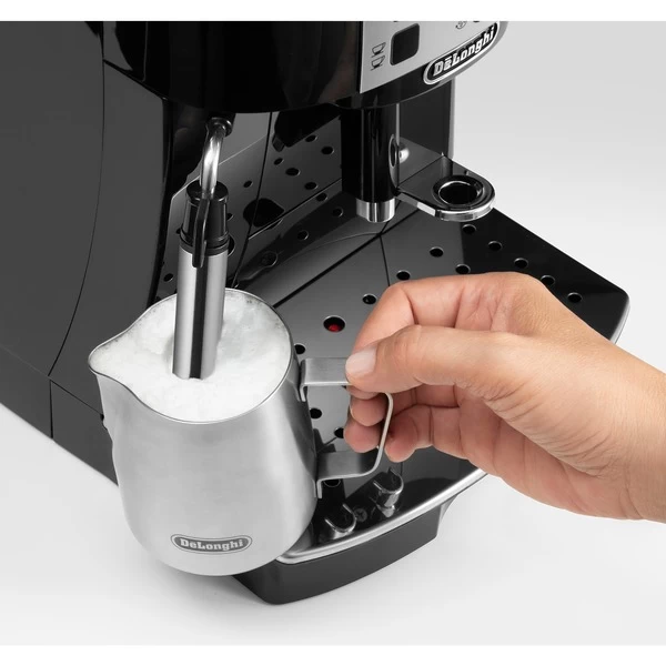 Die Magnifica S ECAM 20.116.B von DeLonghi ist ein Kaffeevollautomat der Extraklasse. Der Automat ist sehr leicht zu bedienen, der Wassertank kann ganz einfach nach vorne entnommen und befüllt werden. Der Bohnenbehälter mit Aromaschutzdeckel befindet sich oben, genauso wie auch der Kaffeepulverschacht. Der Mahlgrad sowie die Kaffeemenge und -stärke können einfach eingestellt werden. Die integrierte Milchaufschäumdüse ermöglicht zudem die Zubereitung von traditionellem Milchschaum oder heißer Milch für zusätzlichen Kaffeegenuss. Der Kaffeevollautomat bietet ein vollautomatisches Spül- und Entkalkungsprogramm.Art.-Nr.: 1870026