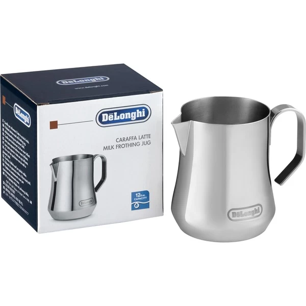 Das Milchaufschäumkännchen DLSC060 von De’Longhi ist aus poliertem Edelstahl gefertigt und hat ein Fassungsvermögen von 350ml. Ein perfekter Cappuccino besteht aus 1/3 gutem Espresso, 1/3 heißer Milch und 1/3 Milchschaum. Um perfekten Milchschaum für Cappuccino oder Caffè Latte zu kreieren, muss gekühlte Milch in einem Gefäß aus Metall aufgeschäumt werden. Dann kann die Milch ganz einfach mit der Dampfdüse am Gerät geschäumt werden. Das Geheimnis ist dabei die Neigung des Milchkännchens, die durch den Ausguss und den komfortablen Griff gewährleistet wird.Art.-Nr.: 1628337