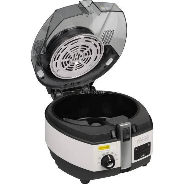 Mit der Heißluftfritteuse MultiFry FH1394 von DeLonghi kann man 1 kg leckere Pommes Frites aus frischen Kartoffeln mit nur 1 Esslöffel Öl zubereiten. Mit einem Fassungsvermögen von bis 1,7 kg frische Kartoffeln und 1,5 kg tiefgekühlte Pommes Frites können 8 Portionen in einem Durchgang zubereitet werden. Dank dem patentierten SHS Double Pro Heizsystem mit dem 1000 Watt starken unteren Heizelement gelingen auch eine sehr große Vielzahl weiterer Gerichte wie Risotto, Couscous, deftige Eintöpfe und Ratatouille, aber auch Pizza, Kuchen und Pasteten hervorragend.Art.-Nr.: 1209223