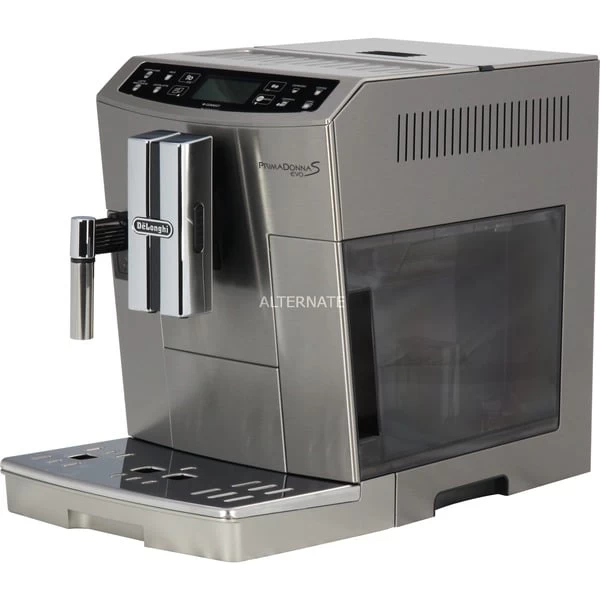 Die PrimaDonna S Evo ECAM 510.55 von DeLonghi ist ein Kaffeevollautomat mit einem hochwertigen Edelstahlgehäuse und dem patentierten DeLonghi LatteCrema System für besonders cremigen, feinporigen Milchschaum. Mit nur einem Knopfdruck bereitet man original italienischen Espresso, Coffee long, Doppio+, leckeren Cappuccino und Latte Macchiato sowie den italienischen Milchkaffee Caffé Latte oder auch heiße Milch zu. Die elegante PrimaDonna S Evo mit ergonomisch schräg gestelltem Sensor-Touch-Bedienfeld verfügt über eine Milchaufschäumdüse mit Vario-Drehregler, zur Einstellung der perfekten Milchschaumkonsistenz. Außerdem ist sie mit einer intuitiven LCD-Anzeige, einer aktiv beheizbaren Tassenabstellfläche, Tassenbeleuchtung sowie einem integrierten Wasserfilter ausgestattet.Art.-Nr.: 1371697