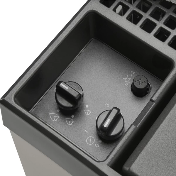 | Bedienung | Dreistufige Regulierung der Flamme bei Gasbetrieb, Thermostatregulierung im 230 V-Betrieb | ||