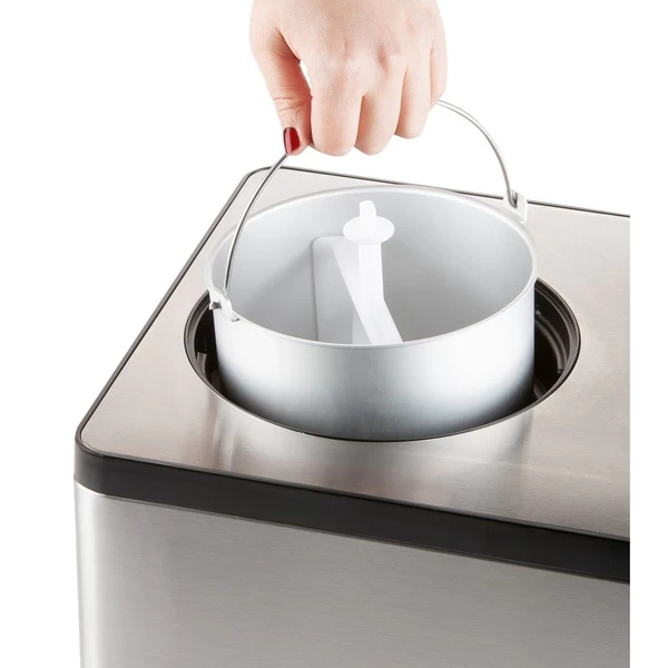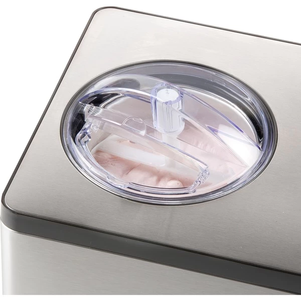 Mit der Edelstahl-Eismaschine DO9207I von Domo lassen sich Sorbets, italienisches Eis und Frozen Yoghurt herstellen. Durch den leistungsstarken Einbaukompressor ist kein Vorgefrieren in der Kühltruhe nötig. Das Fassungsvermögen beträgt 2 Liter, so kann man innerhalb einer Stunde herrliches Speiseeis genießen. Die Eismaschine kann noch eine Stunde nachkühlen, um die Konsistenz des Speiseeis zu halten. Die Bedienung erfolgt über LCD-Anzeige mit Zeit- und Modusanzeige und einfache Tasten. Ein digitaler 60 Minuten Timer sorgt für Komfort. Die 2 l Schüssel lässt sich leicht aus der Maschine heraus nehmen. Im Lieferumfang sind ein Eisportionierer sowie ein Messbecher enthalten.