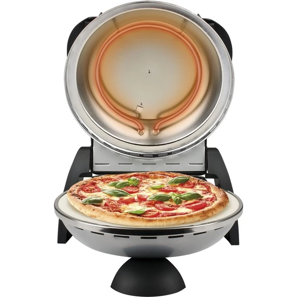 | Weitere Informationen | Der elektrischen Pizzaofen Delizia kann als vielfältiger Expressofen, ähnlich einem Backofen genutzt werden – allerdings platzsparender, mit geringerem Energieverbrauch, ohne Rauch-/ Geruchsentwicklung | ||
