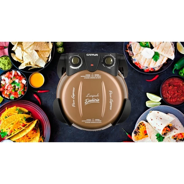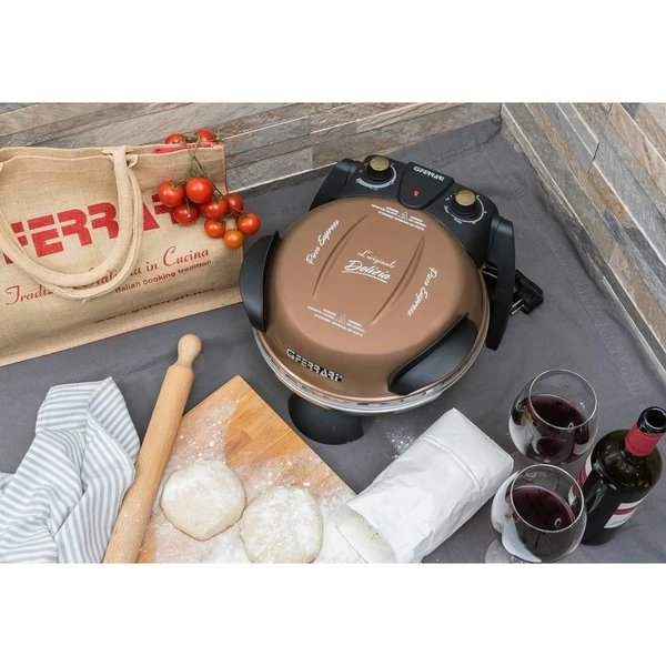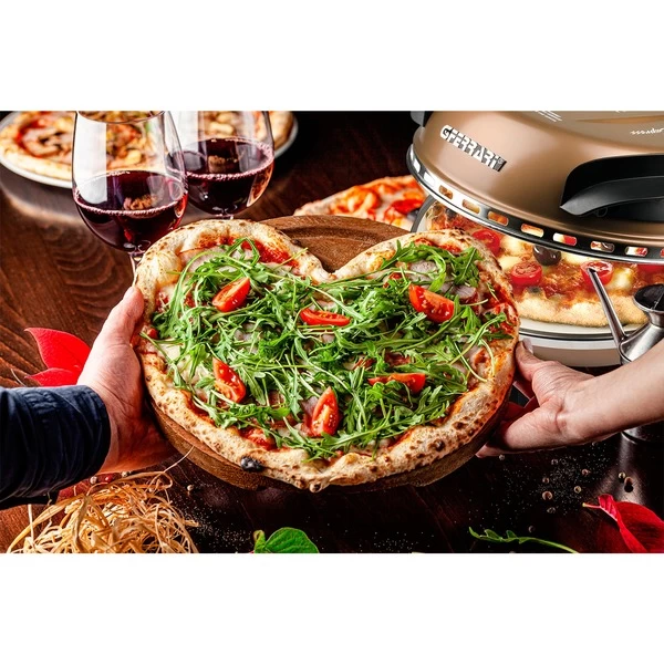Mit dem elektrischen Pizzamaker Delizia von G3 Ferrari gelingen Pizzen zu Hause so einzigartig und knusprig wie aus dem Steinbackofen beim Italiener. Der G3 Ferrari Pizzaofen erreicht Temperaturen von bis zu 400 Grad, für perfekte Backergebnisse. Er eignet sich auch zum schnellen Aufwärmen und Aufbacken von frisch duftendem Brot, Croissants und Baguette. Blitzschnell in nur ca. 5 Minuten ist selbstgemachte Pizza servierbereit, Tiefkühlpizza in ca. 3 Minuten. Durch das Backen mit dem feuerfesten, lebensmittelechten Naturstein wird die Feuchtigkeit des Teiges absorbiert und die Hitze im Stein gespeichert und gleichmäßig an den Teig abgegeben. Das Ergebnis ist ein besonders gleichmäßig knuspriger Boden, lecker und kross. Der Pizzaofen Delizia bietet vielfältige Möglichkeiten, morgens, mittags und abends: Leckere warme Brötchen oder Toast am Morgen, frische Burritos oder Wraps zu Mittag, krosse neapolitanische Pizza, Fladen, Lahmacun oder Flammkuchen zum Feierabend. Dabei ist der Pizzaofen praktisch, einfach in der Bedienung und so kompakt, dass er einfach mitgenommen werden kann, zum Geburtstag, Filmevent, Fußballspiel, Mädelsabend, Camping, nettes Zusammensein oder als Geschenkidee. Durch das ansprechende Design und die vielen erhältlichen Farben ist der Pizzaofen ein Blickfang für jede Küche.Art.-Nr.: 1663448