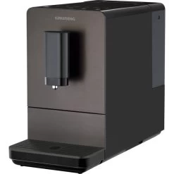 Grundig präsentiert mit dem KVA 4830 seinen ersten Kaffeevollautomaten. Optisch überzeugt er mit einem extra schmalen, extra eleganten Dark-Inox-Design. Mit 19 Bar Pumpendruck und einem leise arbeitenden Kegelmahlwerk mit fünf verschiedenen Mahlgeraden holt die Maschine aus jeder einzelnen Kaffeebohne das Maximum an Geschmack und Genuss heraus und sollte damit Kaffee- und Espressoliebhaber gleichermaßen überzeugen. Der Kaffeeauslauf ist höhenverstellbar, und dank des Vorbrüh-Systems präsentiert sich der Kaffeegenuss Tasse für Tasse brühfrisch. Der Wassertank mit 1,5 Liter Fassungsvermögen ist abnehmbar, die Brüheinheit seitlich herausnehmbar – was eine bequeme Reinigung ermöglicht. Ebenso bequem ist die Bedienung des Geräts: Sie erfolgt zeitgemäß über ein Touch-Display. Und sogar Liebhaber von Tee kommen bei diesem Allrounder dank der zusätzlichen Heißwasserfunktion auf ihre Kosten.Art.-Nr.: 1590713