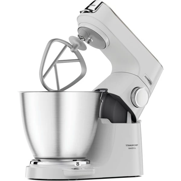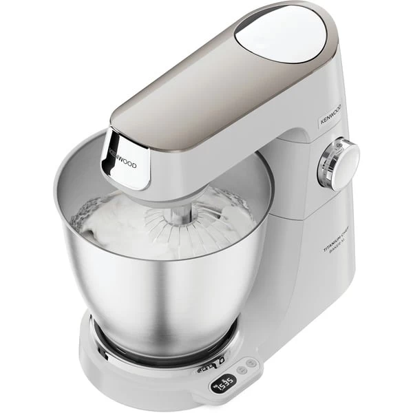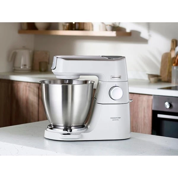 Die Kennwood Chef Titanium Baker Küchenmaschine in weiß kombiniert die bewährte Zuverlässigkeit des Chef-Motors mit einem frischen, ikonischen Design. Mit der integrierten EasyWeigh-Waage kann man die Zutaten direkt in der Rührschüssel abwiegen. Mit dem starken 1.200 Watt Motor und der stufenlosen Geschwindigkeitskontrolle hat man den Rührprozess immer unter Kontrolle. Dank Unterheb-Funktion und Soft-Start kannst du Zutaten behutsam und langsam verrühren, ganz ohne Spritzer. Das einzigartige planetarische Rührsystem nimmt alle Zutaten vom Rand und Boden der Rührschüssel auf und verrührt sie sanft und geschmeidig miteinander. Der Timer zählt bis zu 30 Minuten hoch und pausiert (bis zu 30