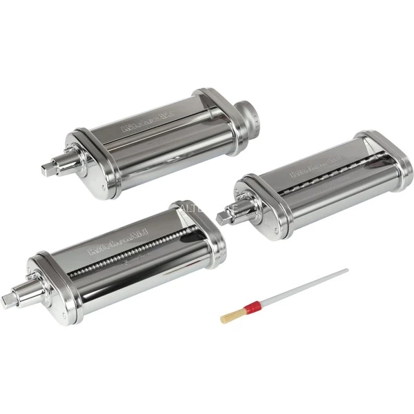 Nudeln per Hand zuzubereiten ist eine lange Tradition. Mit diesem dreiteiligen Pastavorsatz kann man in diese Tradition einzusteigen. Er hilft dabei, weiche und dünne Teigstreifen auszurollen und in drei verschiedene Pastaformate zu schneiden. Der Teigroller rollt den Nudelteig bis zu 140 mm Breite aus und die Dicke ist einstellbar: dick für Tagliolini, mittel für Lasagne und dünn für Linguine. Der Spaghetti-Schneider schneidet die Nudelblätter in klassische Spaghetti, mit dem Bandnudelschneider erhält man herzhafte Fettuccine. Der Pastavorsatz wurde exklusiv für alle KitchenAid-Küchenmaschinen entwickelt. Er wird einfach an der von der Küchenmaschine angetriebenen Zubehörnabe angebracht für selbst gemachte frische Pasta auf die authentische Art – schnell und einfach. Art.-Nr.: 1386825