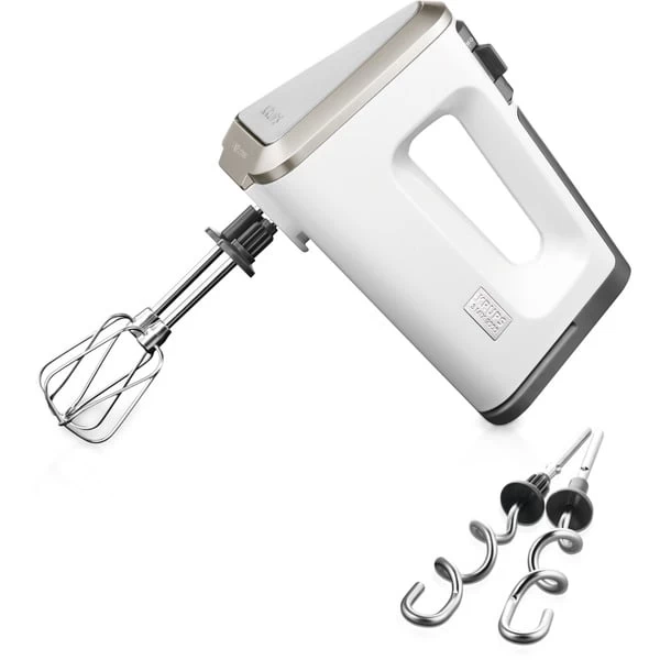 Der Handmixer Krups 3 Mix 9000 GN 9001 mit seiner hochwertigen Front aus gebürstetem Edelstahl eignet sich mit 500 Watt und einer stufenlosen Geschwindigkeitsregulierung optimal zum Verarbeiten von Teig oder zur Vorbereitung von Speisen. Der 3 Mix 9000 GN 9001 verfügt über ein optimales 3-Mix-Zubehör, bestehend aus zwei Turbo-Quirlen und zwei Spiral-Knetern, welche sich über die Auswurftaste bequem entfernen und darüber hinaus sogar in der Spülmaschine reinigen lassen. Die spezielle Form der Quirle sorgt für ein sekundenschnelles Ergebnis beim Eiweiß- oder Sahneaufschlagen. Die große Auflagefläche am Heck des 3 Mix 9000 GN 9001 sorgt für einen sicheren Stand des Geräts.Art.-Nr.: 1114941