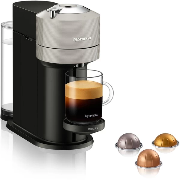 Mit der Vertuo Next Kapselkaffeemaschine von Krups geht das Nespresso-Kaffeeerlebnis noch einen Schritt weiter. Vertuo ist die Technologie von Nespresso für das ultimative Kaffeeerlebnis. Nespresso vereint in Vertuo das Know-how all seiner Kaffeeexperten, die Herkunft und Röstung jeder Kaffeevariation sorgfältig ausgewählt haben. Dank der innovativen Centrifusion Technologie wird jeder Tropfen Kaffee sanft und gleichmäßig extrahiert. Durch die Barcode-Erkennung bereitet die Maschine automatisch für jede Röstmischung die optimale Tasse Kaffee in Größe und Qualität zu. Dabei werden verschiedene Parameter wie Wassermenge, Temperatur, Brühzeit und Rotationsgeschwindigkeit perfekt auf die Kaffeemischung abgestimmt. Mit nur einem einfachen Tastendruck wird ein umfassendes Angebot an unterschiedlichen Kaffeevarietäten in drei Kapselgrößen für jeden Geschmack und in verschiedenen Tassengrößen zubereitet. Die Vertuo Next zeichnet sich durch eine kompakte Stellfläche aus und verfügt außerdem über Bluetooth/Wi-Fi zur Verbindung mit der Nespresso App. Mit ihr erhält man z.B. Softwareupdates für die Maschine. In diesem Bundle enthalten ist auch der Aeroccino Milchaufschäumer. Der Aeroccino ist ein automatisches und erstaunlich einfaches System zur Zubereitung eines cremigen – kalten oder warmen – Milchschaums. Einfach die Milch einfüllen und den Knopf drücken. Innerhalb weniger Sekunden, ohne Geräusch oder Vibration, bereitet der Aeroccino einen herrlichen Milchschaum zu. Der Aeroccino kann außerdem für die Erwärmung von Milch für einen Caffè Latte verwendet werden. Die Kombination aus Vertuo Next und Aeroccino Michaufschäumer ermöglicht eine unendlich große Anzahl an milchbasierten Rezepten.Art.-Nr.: 1673905
