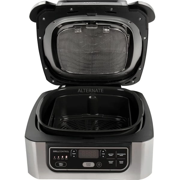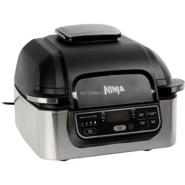 Mit der Nutri Ninja Foodi Grill & Heißluftfritteuse AG301EU genießt man die köstlichen Holzkohlegrill-Aromen der Outdoor-Küche mit einem Indoor-Grill. Mit den Ninja Grills spart man die Energiekosten des Backofens.. Mit dem Ninja Foodi Grill & Heißluftfritteuse kann man schnell und einfach seine Lieblingsgerichte zubereiten: Man verleiht frischen oder tiefgekühlten Zutaten echtes Holzkohlegrill-Aroma mit wenig oder gar keinem zusätzlichen Öl – von brutzelnden Steaks und gegrilltem Fisch über gegrillte Gemüse-Halloumi-Spieße bis zu knusprigen Pommes frites. Man grillt wie ein Profi mit Cyclonic Air-Technologie und Temperaturen bis zu 265 °C. Man genießt mit der Heißluft-Funktion die liebsten frittierten Gerichte in der fettarmen Version. Braten, Backen und Dörren zusätzlich mit einem Gerät und zaubert somit ganz einfach aufregende Mahlzeiten und Snacks.Art.-Nr.: 1908497