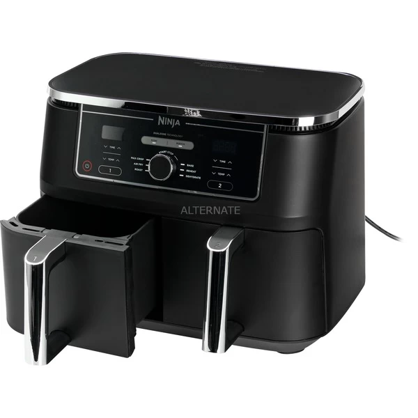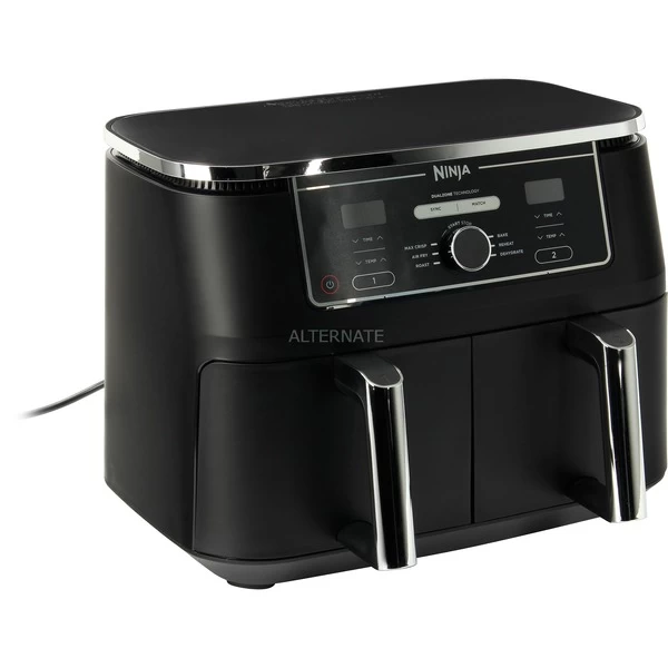 Die Nutri Ninja Foodi MAX Dual Zone AF400EU ist mehr als eine Heißluftfritteuse. Sie bietet 6 Zubereitungsfunktionen, wie Max Crisp, Braten, Backen, Aufwärmen, Dörren und Heißluft-Frittieren. Diese vielseitige Heißluftfritteuse ist die ultimative Lösung für alle Mahlzeiten, perfekt für die Verpflegung der ganzen Familie. Mit zwei unabhängigen Garzonen kann man Garprogramme, Zeiten und Temperaturen in beiden Fächern mischen und anpassen, um im Handumdrehen köstliche Gerichte zuzubereiten. Mit der SYNC-Funktion kann man in jedem Fach unterschiedliche Speisen garen und beide gleichzeitig auf den Tisch bringen. Man kann die MATCH-Funktion verwenden, um mit denselben Einstellungen der Portionsgröße in beiden Fächern zu verdoppeln.Art.-Nr.: 1905403