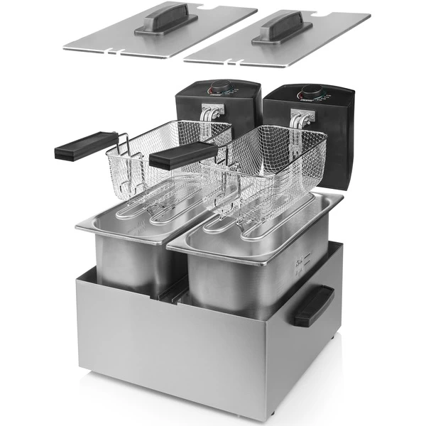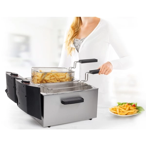 | Ausstattung | 2 Frittierkörbe, regelbares Thermostat | ||