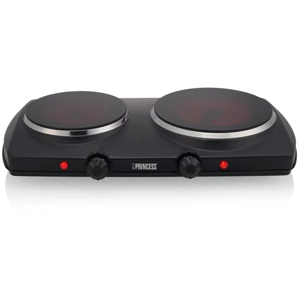 Die Glaskeramik-Doppelkochplatte 303021 von Princess mit zwei Platten (16 cm und 19 cm Durchmesser) ist einfach zu bedienen. Durch das elegante, kompakte Design passt die Kochplatte in jede Umgebung. Ausgestattet mit zwei Thermostaten, kann die bevorzugte Temperatur für jedes Gericht ausgewählt werden. Für einen sicheren Gebrauch sorgen die Kontrollleuchte, rutschfeste Füße sowie der Überhitzungsschutz.