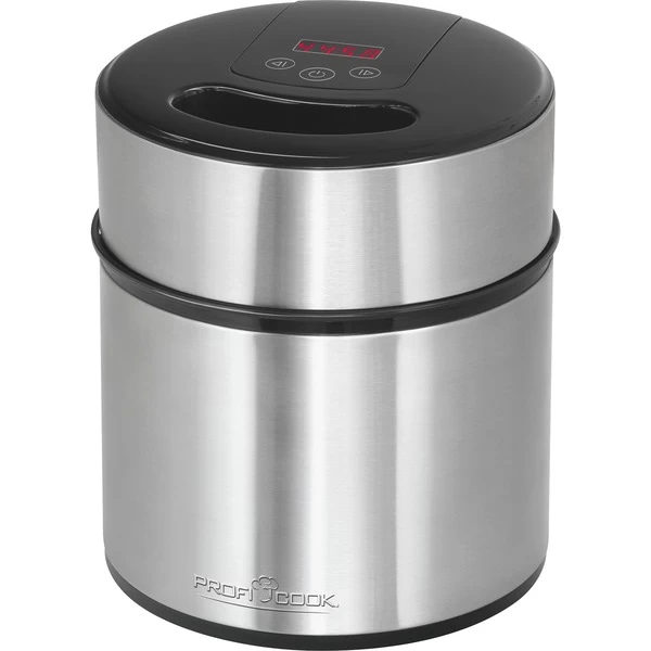 Mit der Eismaschine PC-ICM 1140 von ProfiCook lassen sich köstliche Eiscreme, Frozen Yogurt und Sorbet nach dem eigenen Geschmack herstellen. Einfach den Behälter mit Kältespeicher für 8-12 Stunden tiefkühlen. Die PC-ICM 1140 ist mit einem elektronischen Sensor Touch-Bedienfeld und einem Timer mit automatischer Abschaltung ausgestattet. Die Zeiteinstellung ist von 5 bis 45 Minuten variabel einstellbar und die verbleibende Zeit wird auf dem LCD-Display angezeigt. Das Fassungsvermögen beträgt 1,8 Liter. Der Deckel hat eine Nachfüllöffnung, so können auch nach und nach noch Zutaten hinzugefügt werden. Zur einfachen Reinigung ist das Gerät komplett zerlegbar. Art.-Nr.: 1554012