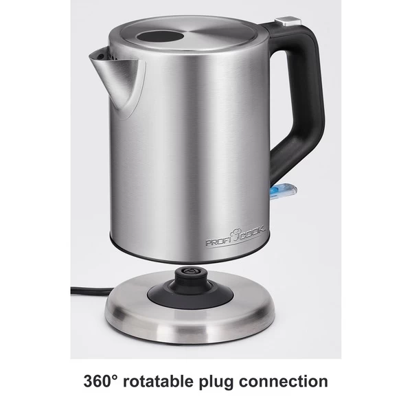 Der PC-WKS 1106 ist ein schlichter Wasserkocher im eleganten Edelstahlgehäuse und verdecktem Edelstahlheizelement. Zum Aufheizen wird der Wasserkocher einfach auf die 360° Basisstation gestellt und angeschaltet. Der Heizvorgang kann automatisch oder manuell beendet werden, zusätzlich signalisiert der blaue LED Ein-/Ausschalter über den laufenden Vorgang. Der Deckel des PC-WKS 1106 ist verriegelt und kann über den Knopf ganz einfach mit einer Hand bedient und geöffnet werden.Art.-Nr.: 1459701
