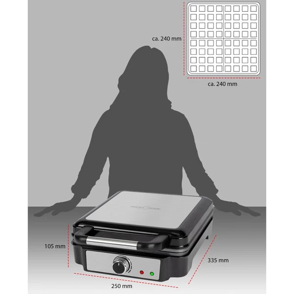 | Ausstattung | Backampel, Bereitschaftsanzeige, Temperaturregelung, einstellbarer Bräunungsgrad, Teigauffangrille | ||