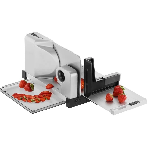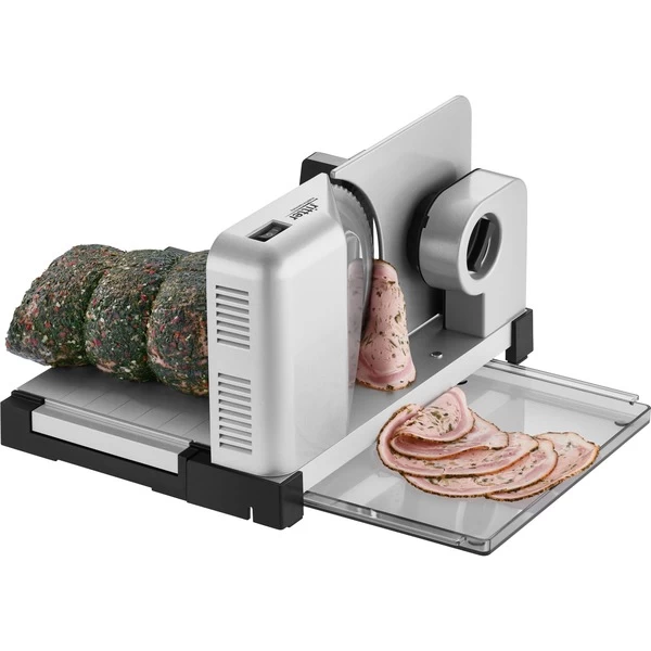 | Ausstattung | Dauerbetrieb, Momentbetrieb, Schnittstärke stufenlos einstellbar, Schneidgut-Auffangschale, abnehmbarer Schlitten | ||