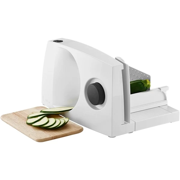 | Ausstattung | Dauerbetrieb, Momentbetrieb, Schnittstärke stufenlos einstellbar, abnehmbarer Schlitten | ||