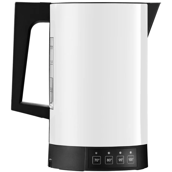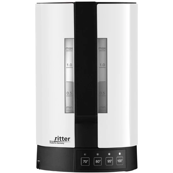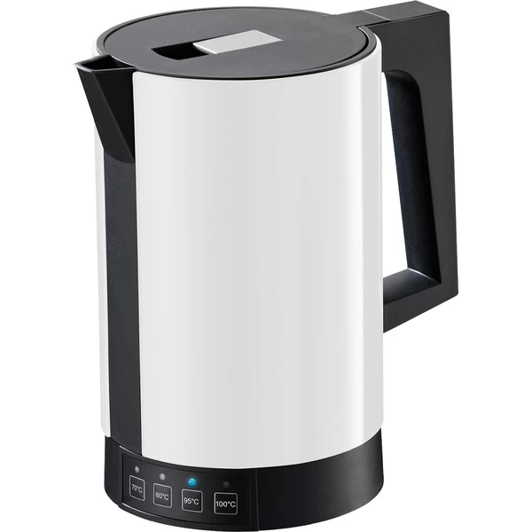 Die richtige Zubereitung und vor allem die korrekte Wassertemperatur sind entscheidend für den optimalen Genuss von Schwarztee, Grüntee oder Kaffee. Der Wasserkocher fontana 5 kann deshalb mehr als nur Wasser kochen, denn er erhitzt es nur genau auf die Temperatur, die jeweils gewünscht wird. Unnötiges Erhitzen und Abkühlen auf die benötigte Temperatur entfällt also und spart somit Strom. Das Wasser kann mit Hilfe von vier Temperatureinstellungen genau auf 70, 80, 95 oder 100 Grad Celsius erhitzt werden – ganz einfach per Tastendruck. Das wärmeisolierte Gehäuse bietet dabei gleich zwei Vorteile: zum einen schützt es vor unangenehmen Verbrennungen bei der Benutzung. Zum anderen kühlt das erhitzte Wasser durch das doppelwandige Gehäuse langsamer ab. Nicht nur durch Energieeffizienz überzeugt fontana 5, sondern im besonderen Maße auch durch seine Benutzerfreundlichkeit: Egal ob Links- oder Rechtshänder – mit der beidseitigen Wasserstandsanzeige kann die Füllmenge jederzeit problemlos abgelesen werden ohne diese mit der Hand zu verdecken. Durch den besonders weit zu öffnenden Deckel kann der Wasserkocher leicht befüllt und abschließend genauso einfach getrocknet oder gereinigt werden. Um lästigen und unansehnlichen Kalkablagerungen vorzubeugen, ist fontana 5 mit einem hochglanzpolierten Heizboden aus Edelstahl ausgestattet. Durch die glatte Oberfläche haftet Kalk erst gar nicht so schnell an und lässt sich leichter entfernen. Da die Wasserhärte lokal bedingt ist, ist der Wasserkocher mit zwei Metall-Kalkfiltern ausgestattet. Der grobporige Kalkfilter ist bei stark kalkhaltigem Wasser zu verwenden. Durch die größeren Poren bleibt die Wasserdurchlässigkeit trotz Kalkablagerungen für einen längeren Zeitraum bestehen. Der feinporige Kalkfilter sollte bei Wasser mit geringem Kalkgehalt verwendet werden, damit auch kleinste Kalkkrümel zurückgehalten werden. Die scharfe Ausgusskante sorgt dann für ein angenehmes Ausgießen ohne lästiges Nachtropfen. Es sind eben oft Kleinigkeiten, die in der Summe ein praktisches Küchengerät ausmachen. Auch in puncto Sicherheit erfüllt fontana 5 alle Anforderungen: So sind die Temperaturtasten mit wasserdichter Folie überzogen und der Wasserkocher schaltet sich automatisch nach dem Erreichen der eingestellten Temperatur ab. Er ist darüber hinaus mit einem Trockengeh- und Überhitzungsschutz ausgestattet. Zusätzlich sorgen ein Sicherheitsdeckel, der mit zwei Fingern zu öffnen ist und somit ein unbeabsichtigtes Öffnen verhindert, sowie die beleuchtete LED Anzeige für eine sichere Handhabung des Wasserkochers. fontana 5 bietet einen geringen Energieverbrauch, eine bedienungsfreundliche Handhabung und besteht aus umweltschonenden Materialien. Er überzeugt auch mit seiner Form und Farbwahl in klarer, zeitloser Bauhaus-Optik. Zusammen mit dem unvergleichbar schmalen Toaster volcano 5 und der energiesparenden Kaffeemaschine cafena 5 ist das farblich abgestimmte Frühstücksset komplett – natürlich „made in Germany“.Art.-Nr.: 1476433