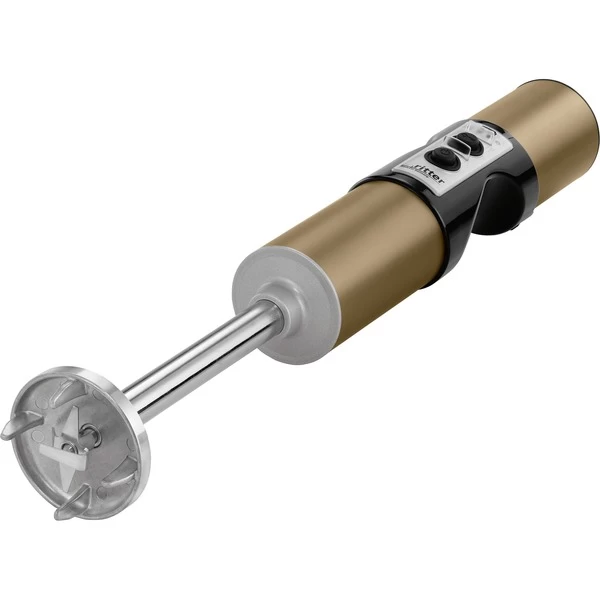 Der Stabmixer stilo7 verfügt über eine hohe Materialqualität und besteht zum größten Teil aus stabilem Metall, während der Griff zugunsten angenehmer Ergonomie aus hochwertigem Kunststoff ist. Aufgrund des Akkubetriebs sorgt der kabellose Stabmixer für absolute Freiheit beim Kochen. Über eine LED-Anzeige kann der Ladestand des Akkus einfach abgelesen werden. Der Lithium-Ionen-Akku wird dank intelligenter Ladetechnik schonend und langsam aufgeladen ohne zu überladen. Der Ladevorgang endet automatisch, sobald der Akku voll ist. Diese Ladetechnik sorgt für eine lange Lebensdauer des Akkus. Auch das Thema Sicherheit kommt beim Stabmixer stilo7 nicht zu kurz: Er verfügt über ein Sicherheits-2-Finger-Einschaltsystem. Damit ein versehentliches Anschalten verhindert wird, müssen Entsperr- und Einschalttaste gleichzeitig betätigt werden. Der Stabmixer läuft mit maximaler Drehzahl von ca. 12.000 Umdrehungen pro Minute an. Mithilfe des Durchschaltsystems können dann zwei weitere niedrigere Drehzahlstufen ausgewählt werden. Als Schutz vor Überlastung schaltet das Gerät beispielsweise bei Blockade des Messers oder Überhitzung automatisch ab. Mit dem Universalmesser lassen sich die meisten Lebensmittel Pürieren. Der Kunststoff-Mixbecher ist durch seine schmale, hohe Form optimal für die Verarbeitung geeignet.Art.-Nr.: 1834777