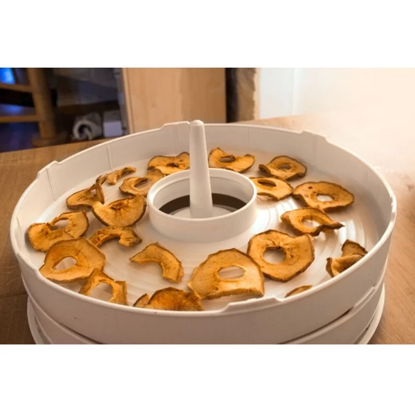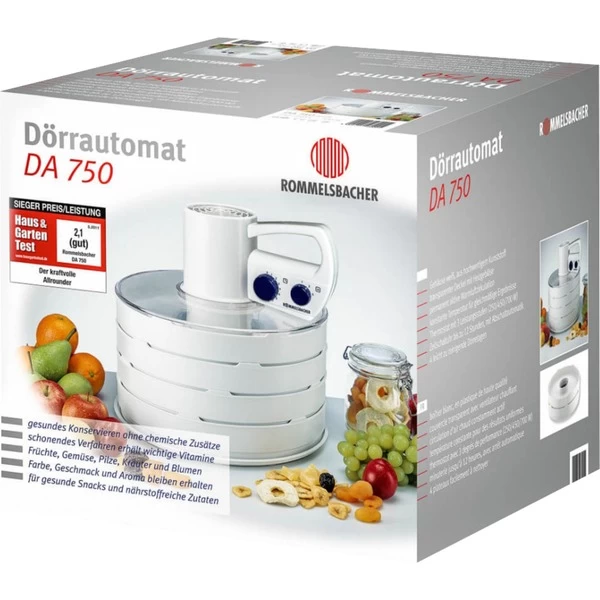 Mit dem Dörrautomaten DA 750 können Obst, Gemüse, Pilze oder Kräuter besonders schonend konserviert werden. Das Heizgebläse sorgt für permanent aktive Warmluftzirkulation und die konstante Temperatur für gleichmäßige Ergebnisse. So werden Geschmack, Nährwerte und Mineralien erhalten – ganz ohne chemische Zusätze und Zucker. Gesundheitsbewusste und Allergiker stellen selbst getrocknete Zutaten für Müsli, Suppen und Saucen her. Naschkatzen versorgen sich mit gesunden Snacks – ideal zum Knabbern unterwegs. Die 3 Leistungsstufen und die Zeitschaltuhr mit Abschaltautomatik sorgen für Bedienkomfort. Das hochwertige Kunststoffgehäuse überzeugt durch leichte Reinigung und rundet das praktische Gerät ab.Art.-Nr.: 1076730