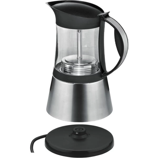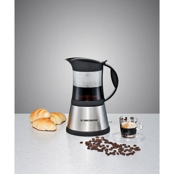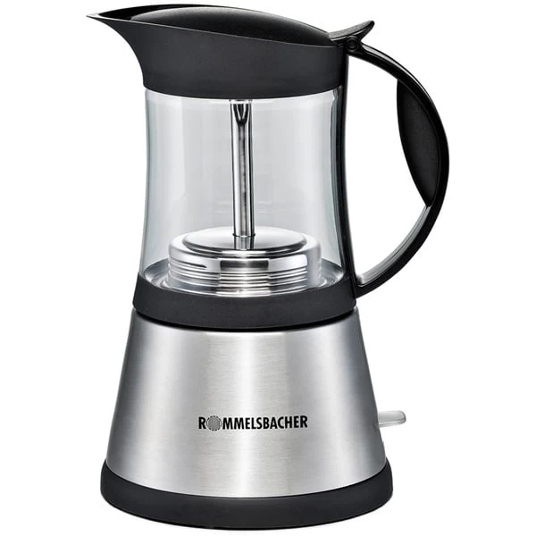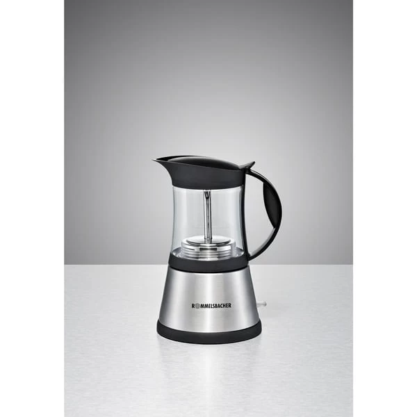 Mit dem Rommelsbacher EKO 376/G Espressokocher genießt man zu Hause original italienischen Espresso. Der hochwertige elektrische Espressokocher mit dekorativer Glaskanne ist nicht nur optisch ein Blickfang, sondern besticht auch durch die traditionelle Art der Kaffeezubereitung. Elegantes Design und hochwertige Materialien aus Edelstahl und Glas runden die Ausstattung des Gerätes ab. Das Gerät verfügt über ein integriertes Heizsystem und ist somit unabhängig von einer Kochplatte einsetzbar. Ob 6 Tassen oder 3 Tassen Espresso, die Bedienung ist einfach und bequem. Wasser und Espressopulver einfüllen, Gerät auf den Zentralsockel aufsetzen, einschalten und los geht’s. Sobald der Espresso fertig ist, schaltet sich der Espresso Kocher automatisch ab!Art.-Nr.: 1518913