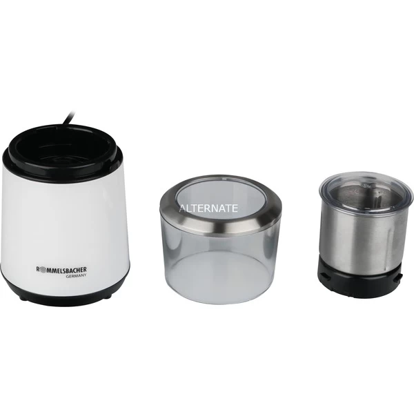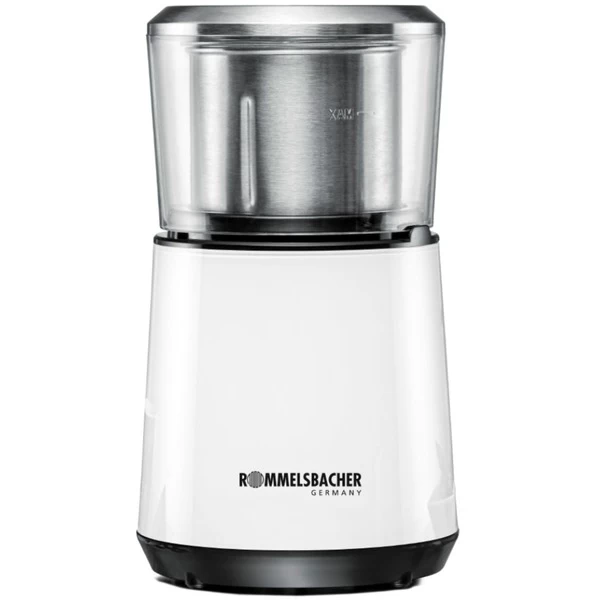 Die elegante Kaffeemühle EKM 125 von Rommelsbacher eignet sich nicht nur perfekt zum Mahlen und Zerkleinern von Kaffeebohnen, sondern auch von Gewürzen, Nüssen, Zucker und mehr. Der Arbeitsbehälter ermöglicht mit einem 4-flügeligen Universalmesser eine variable Nutzung. Die Handhabung ist sicher und einfach, da sich der Mahlgrad über die Mahldauer individuell einstellen lässt. Der leistungsstarke 200 Watt Motor arbeitet leise. Der abnehmbare Behälter besteht aus robustem Edelstahl und fasst 50g Bohnen. Robuste Materialien, durchdachte Technik und die Tatsache, dass alle abnehmbaren Teile spülmaschinengeeignet sind, dies alles sorgt für einen hohen Bedienkomfort. Die EKM 125 ist ein praktischer Küchenhelfer, der überall Einsatz findet.Art.-Nr.: 1584129