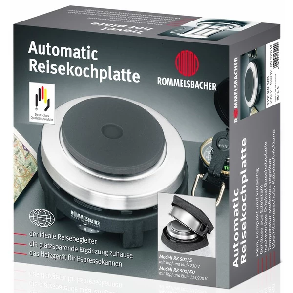 Ob Urlaub oder Wochenendtrip – die hochwertige, kleine Automatik Reisekochplatte RK 501 mit langlebiger Gussheizplatte, stufenloser Temperaturregelung, Ankochautomatik und Überhitzungsschutz bietet die perfekte Technik, um unterwegs kleine Mengen Speisen oder Getränke zuzubereiten. Aber auch zum Warmhalten von Soßen oder Beilagen direkt bei Tisch ist diese kompakte Kochplatte ein praktischer Helfer. Durch den kleinen Plattendurchmesser ist sie zudem ideal für italienische Espressokocher geeignet. Das Gerät ist leicht zu verstauen und daher immer und überall einsatzbereit.Art.-Nr.: 1519387