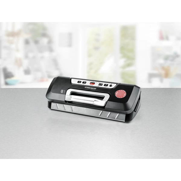 Der außergewöhnliche Vakuumiergerät VAC 285 überzeugt durch seine durchdachte Ausstattung. Der große Handgriff ermöglicht eine komfortable Einhand-Bedienung, das Gerät lässt sich leicht öffnen und sicher schließen. Ob kleiner oder großer Haushalt, der Vakuumierer ist flexibel einsetzbar und auch für den Langzeitbetrieb geeignet. Ein Großeinkauf lässt sich ohne Zwischenpausen verarbeiten, die Ernte aus dem Gemüsegarten kann zügig verpackt werden. Die leistungsstarke Pumpe saugt bis zu 97 % der Luft aus den speziellen Vakuumierbeuteln und versiegelt diese dann vollautomatisch mit einer stabilen Naht und das alles in nur einem Arbeitsgang. Mit der in 2 Stufen einstellbaren Versiegelungsdauer lässt sich der Vakuumiervorgang individuell an die zu verarbeitenden Lebensmittel anpassen. Für besonders druckempfindliche Nahrungsmittel steht eine manuelle Absaug- und Versiegelungsfunktion zur Verfügung. Besonders praktisch ist das Sichtfenster, so kann die korrekte Positionierung des Beutels im Gerät kontrolliert werden. Mit der Funktion „Behälter vakuumieren“ können selbst sensible und flüssige Lebensmittel in speziellen Vakuumiergefäßen vakuumverpackt und lange frisch gehalten werden. Durch Vakuumieren wird die Haltbarkeit von Lebensmitteln um das 3 bis 5-fache verlängert, darum sollte dieses praktische Gerät in keinem Haushalt fehlen! Tipp: Das Gerät kann auch zum Vorbereiten der Lebensmittel für Sous Vide Garen, genutzt werden.Art.-Nr.: 1519535