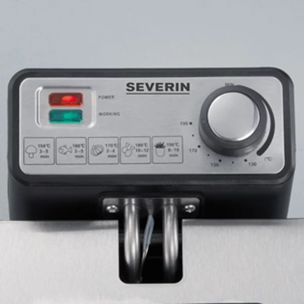 Die Severin Fritteuse FR 2431 frittiert Pommes, Berliner oder Fischstäbchen im Handumdrehen. Super schnell ist das Fett erhitzt, denn 2000 Watt heizen dem Frittierfett mächtig ein. Bis zu 400 Gramm Pommes können in einem Arbeitsgang knusprig frittiert werden. Die Betriebstemperatur lässt sich stufenlos bis 190 Grad regeln. Im Deckel der Severin Fritteuse FR 2431 befindet sich ein auswechselbarer Fettfilter. Und wer den Fischstäbchen beim bräunen zuschauen möchte, kann das gerne tun: Im Deckel ist ein Sichtfenster eingebaut.Art.-Nr.: 1194798
