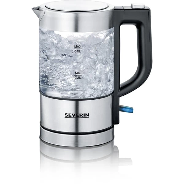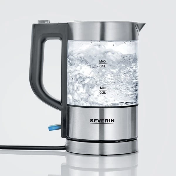 Der kompakte Mini Glas-Wasserkocher integriert sich stilvoll und modern in jede noch so kleine Küchenzeile. Mit 0,5 l Kapazität ist er extrem platzsparend und verhindert unnötiges Verschwenden von Wasser im Alltag. Durch die Einhandbedienung lässt sich der WK 3472 komfortabel bedienen – dank beidseitig bedruckter Wasserstandsanzeige ist er zudem perfekt für Rechts- und Linkshänder geeignet. Die hochwertige Kombination aus Glas und Edelstahl ist nicht nur optisch ein echter Hingucker, sondern sorgt durch die Verwendung von 100% BPA-freien Materialen auch einen unbedenklichen Genuss.