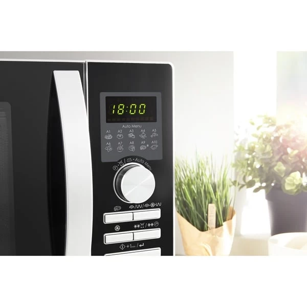 Das Sharp Kombi-Mikrowellengerät (3-in1) R843INW mit Heißluft- und Grill-Funktion eignet sich besonders gut zum schnellen Garen von Speisen, die knusprig gebräunt oder überbacken werden sollen. Die Mikrowelle überzeugt mit 25 Litern Nutzinhalt im Garraum und 900 Watt Leistung, in 5 Stufen wählbar. Die 10 voreingestellten Gar- und Auftau-Automatikprogramme erleichtern dabei zusätzlich die Zubereitung. Der integrierte Timer der R843INW lässt sich bis 95 Minuten einstellen.Art.-Nr.: 1490806